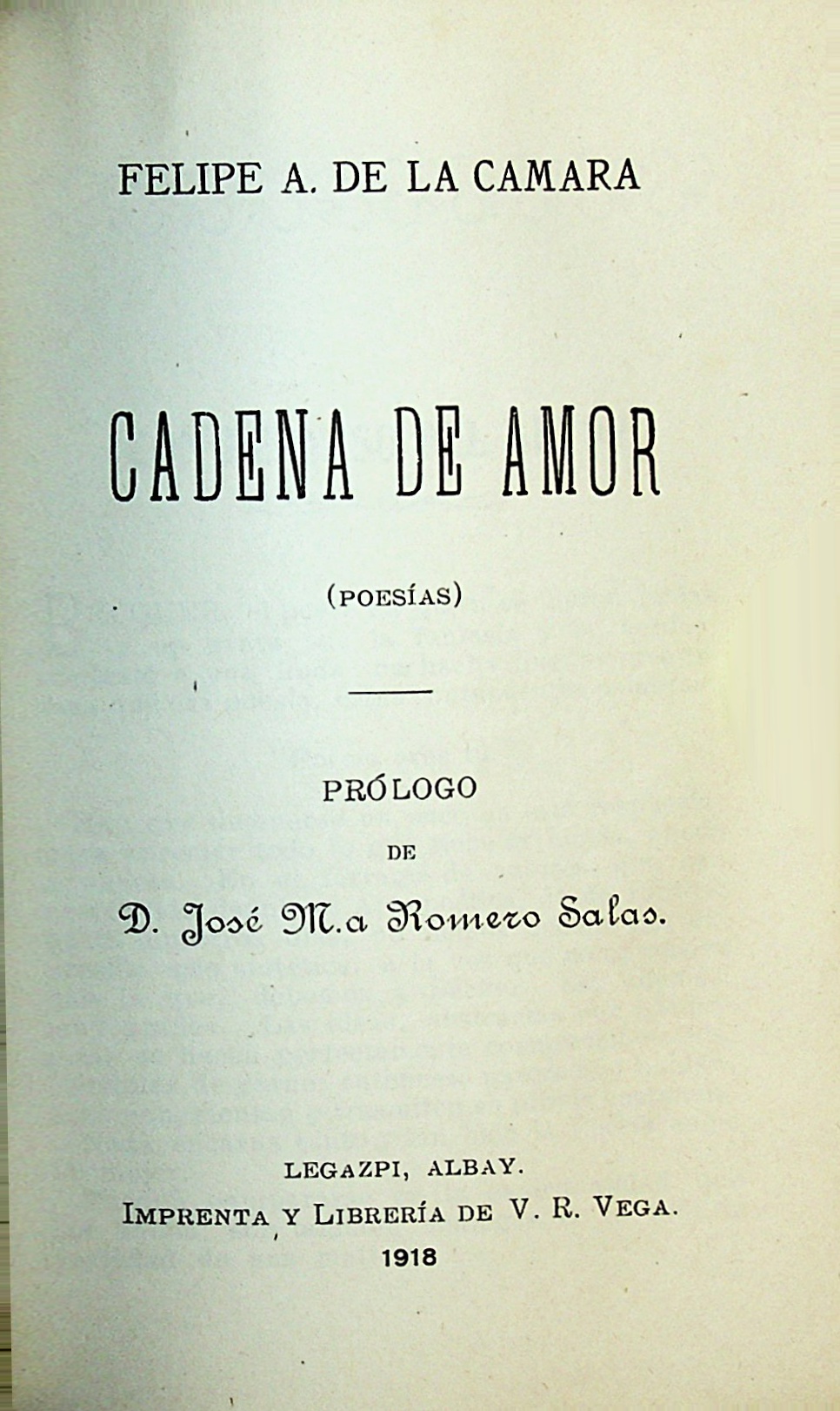 Cadena de amor (poesias). Camara, Felipe A. de la