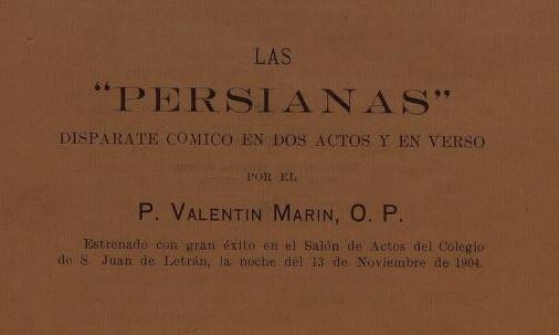 Las "persianas". Disparate comico en dos actos y en verso: Estrenado ..en el salon de actos del colegio de S. Juan de Letran la noche del 13 de Noviembre de 1904