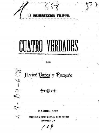 Cuatro verdades: la insurreccion filipina. Bores Romero, Javier