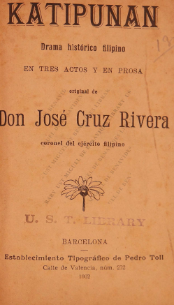 Katipunan: drama historico Filipino en tres actos y en prosa. Cruz Rivera, José