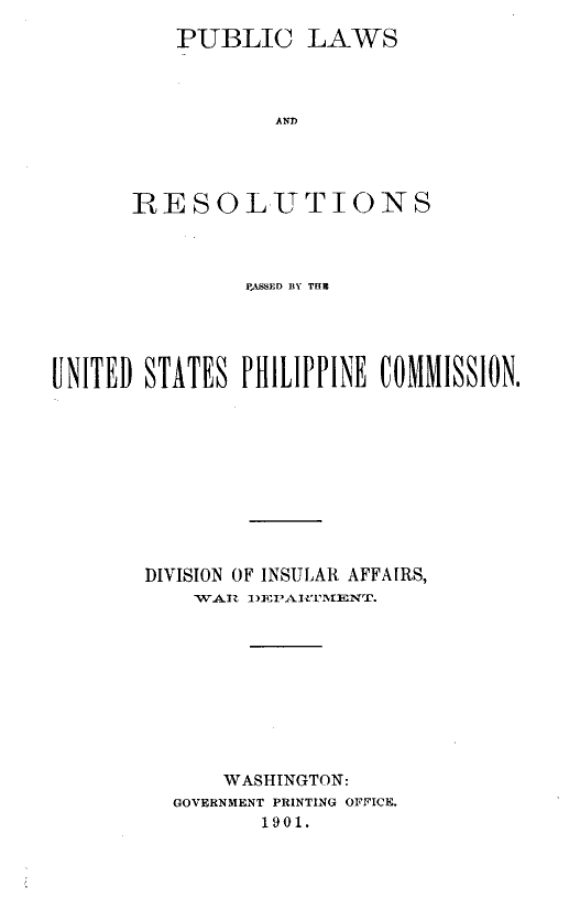 Public laws and resolutions passed by the United States Philippine Commission