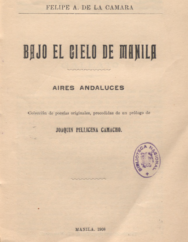 Bajo el cielo de Manila, aires andaluces: coleccion de poesias originales. Camara, Felipe A. de la