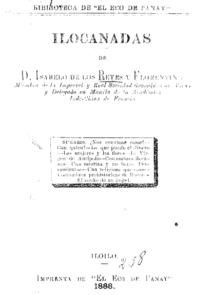 Ilocanadas: varios trabajos literarios. Reyes y Florentino, Isabelo de los